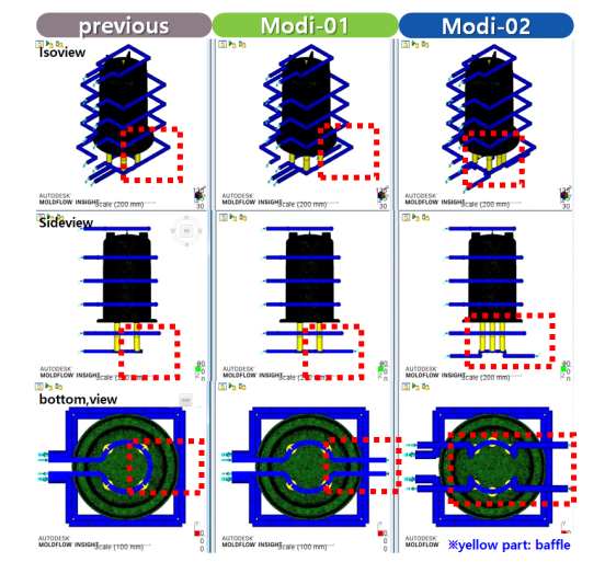 대형(5L) 투명용기 사출성형 시 냉각채널 구조에 따른 변형 특성 분석