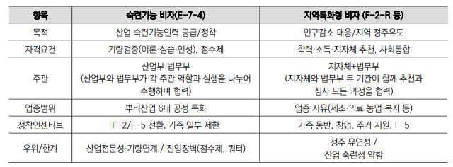 지역 뿌리산업의 숙련 외국인력 확보를 위한 현행 비자제도 비교 및 개선방안 제언 : E-7-4와 F-2-R의 비교 중심으로